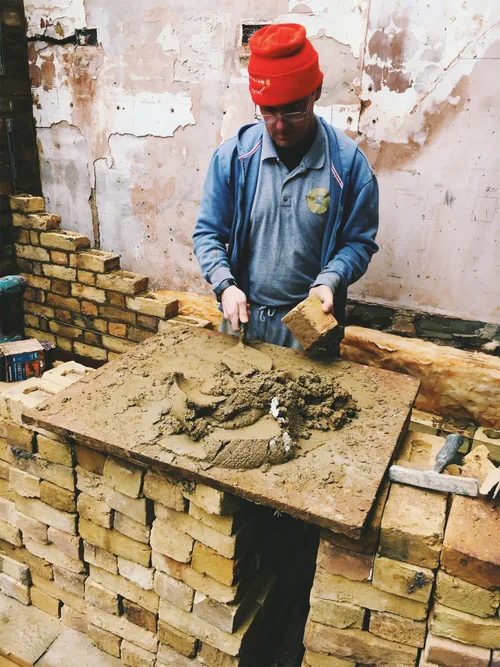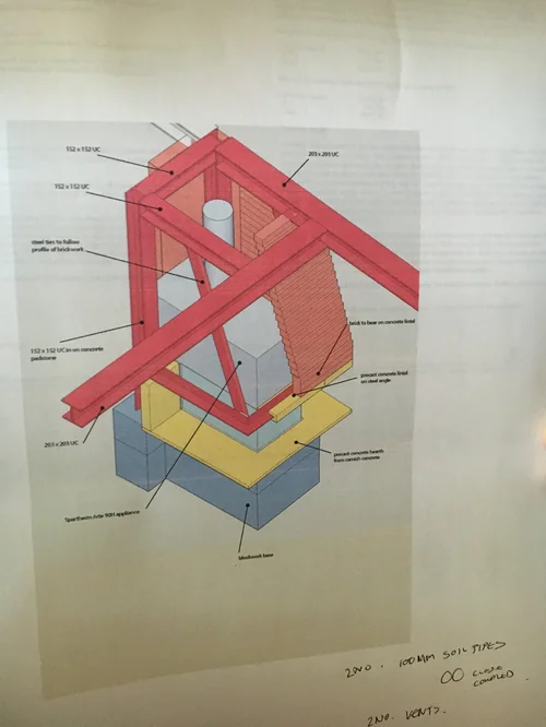 The entire ground floor was opened up, all interior walls knocked down and most flooring and ceilings ripped up. The central monster chimney was a massive engineering project. We decided to get help from the original chimney wizards, Billing Chimneys who helped design the thing.